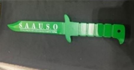 - Realistic replica swords, knives, and blunt weapons that closely resemble real weapons, even if displayed in a locked box or sold as a collectible.