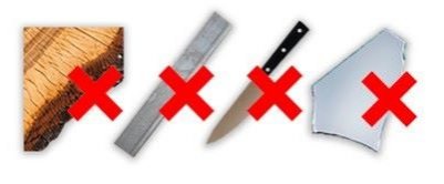- Sharp items e.g. arrows, bolts, protruding nails;